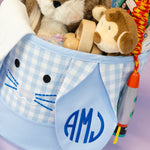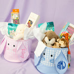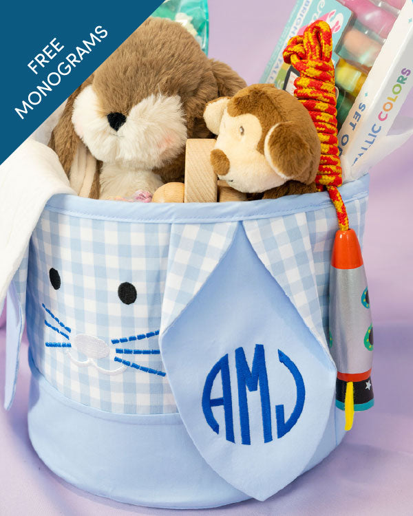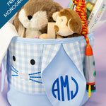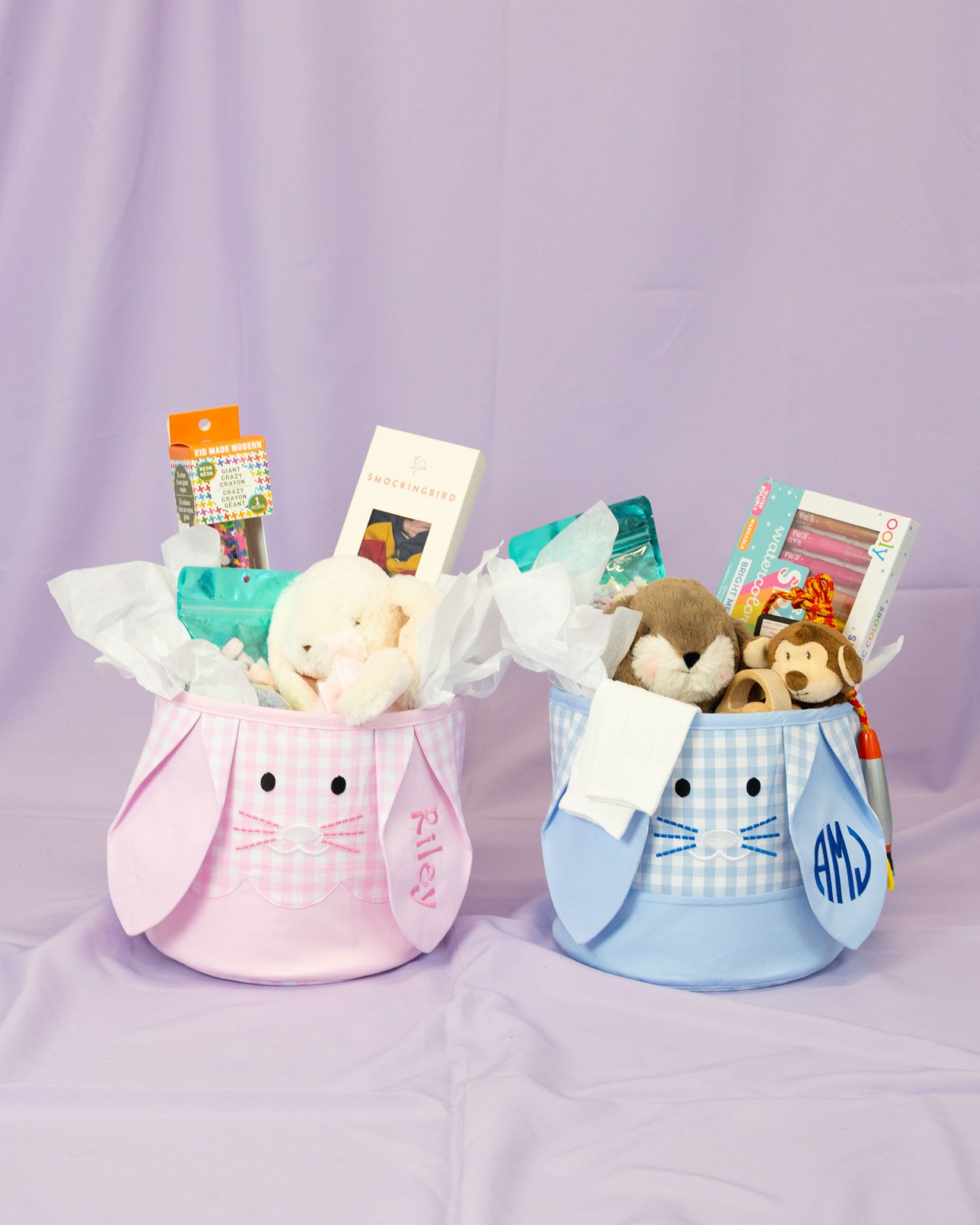 This adorable basket is the perfect size for egg hunts and basket stuffers! Add a free name or monogram to the ear to complete the look.
