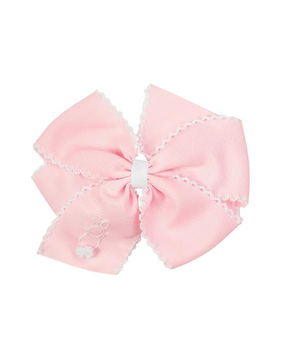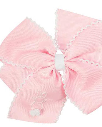 Bunny Embroidered Pink Hair Bow with White Trim