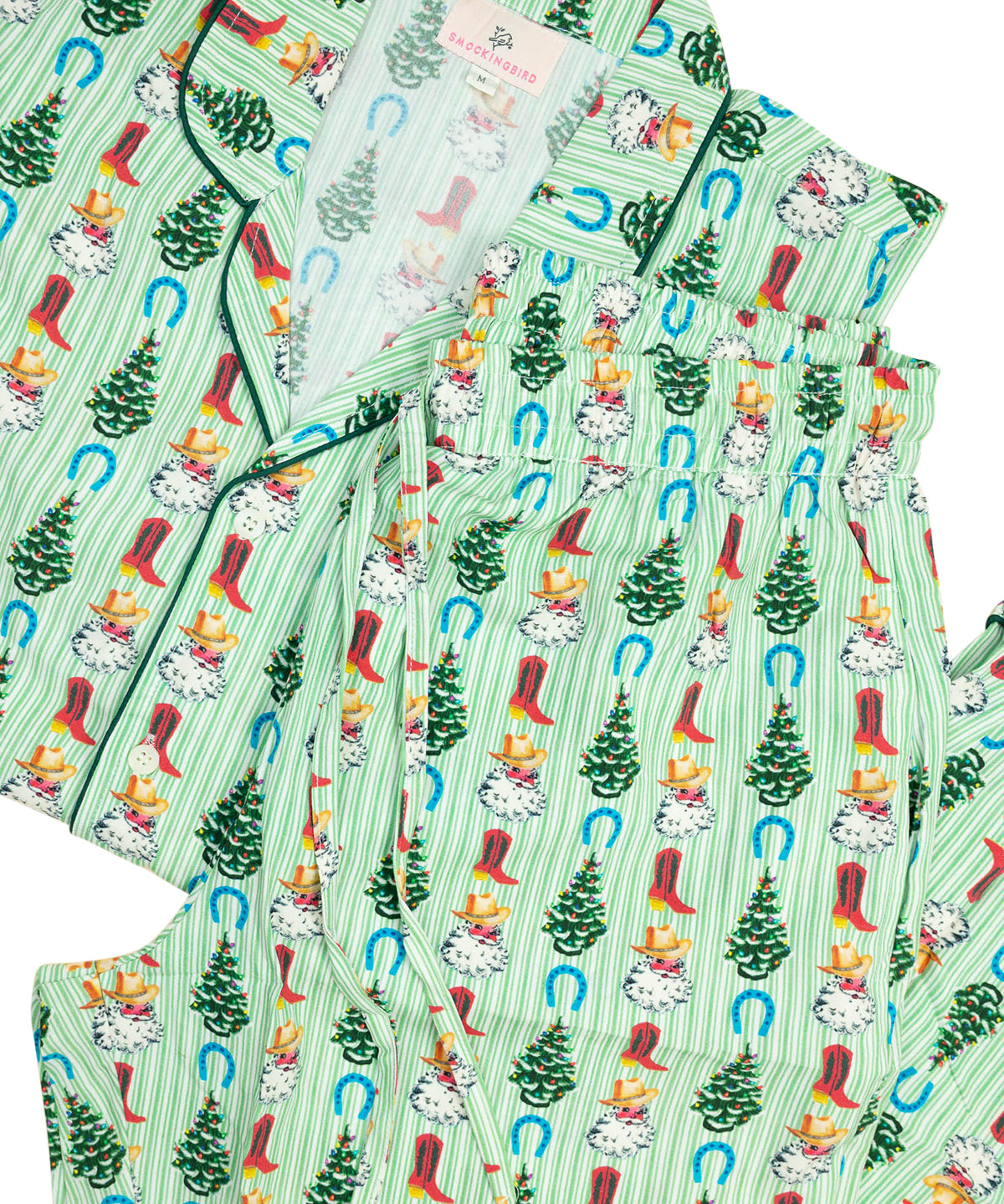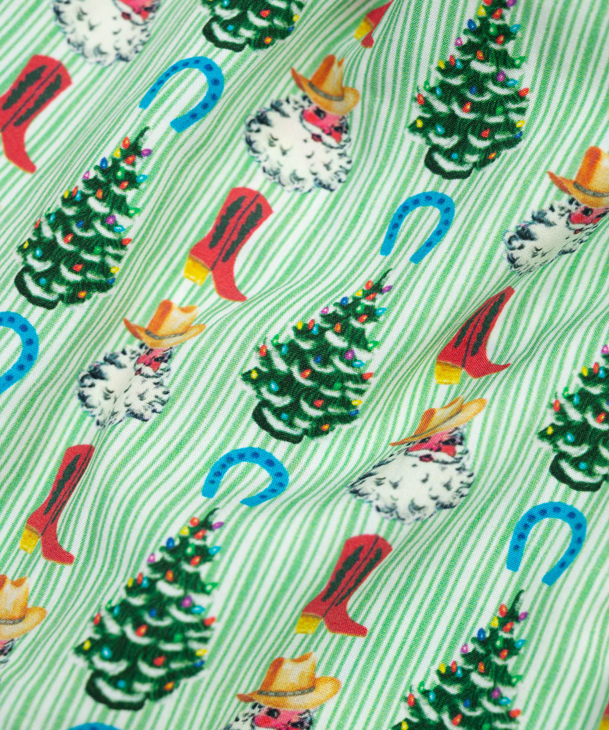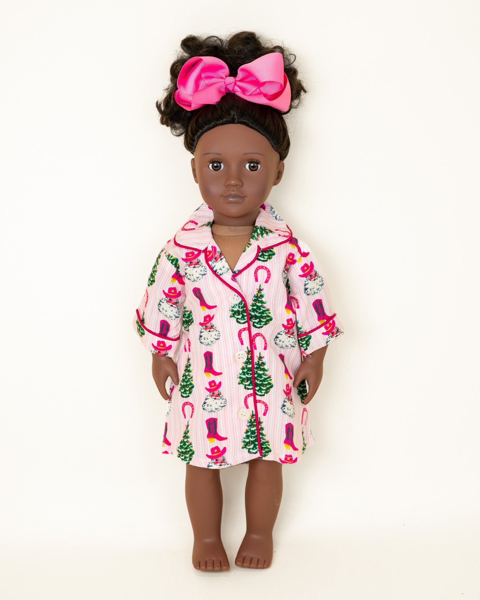 The Cowboy Christmas Doll Gown is the perfect holiday accessory for doll lovers. Featuring the same festive cowboy print as the kids’ pajamas, this gown completes the matching look. A wonderful gift for little ones who love to include their dolls in holiday traditions. Fits an 18 inch tall doll.