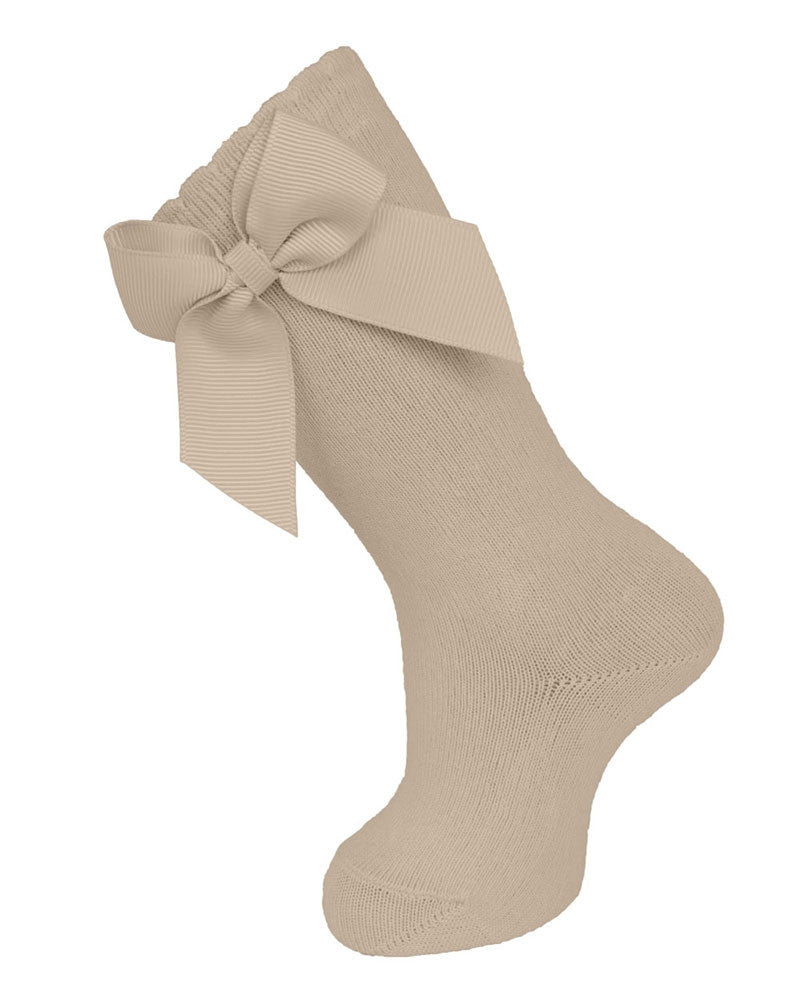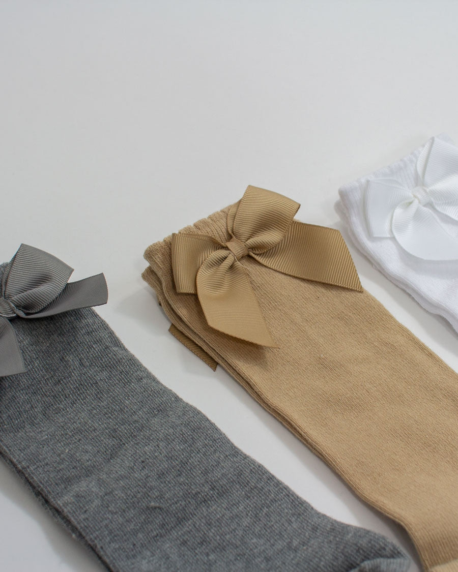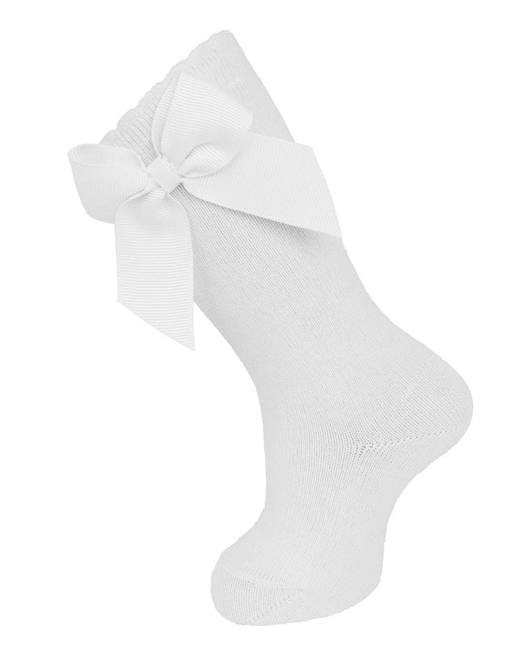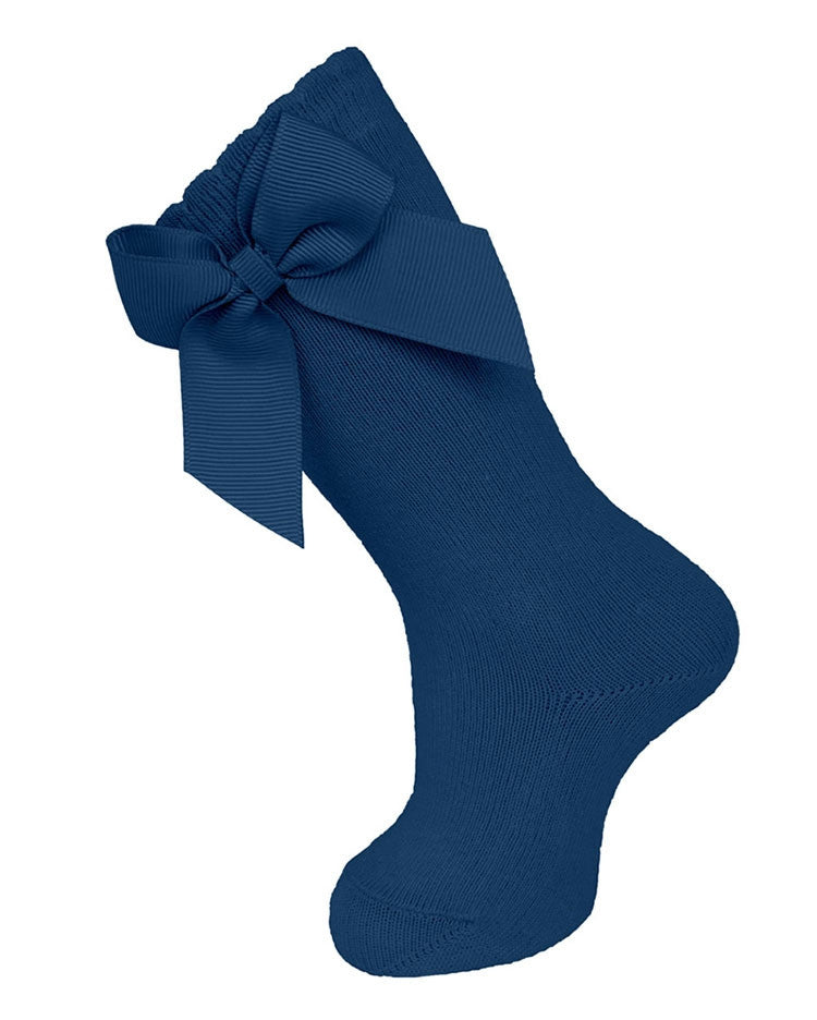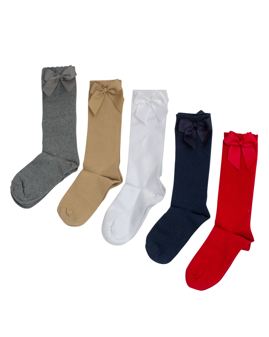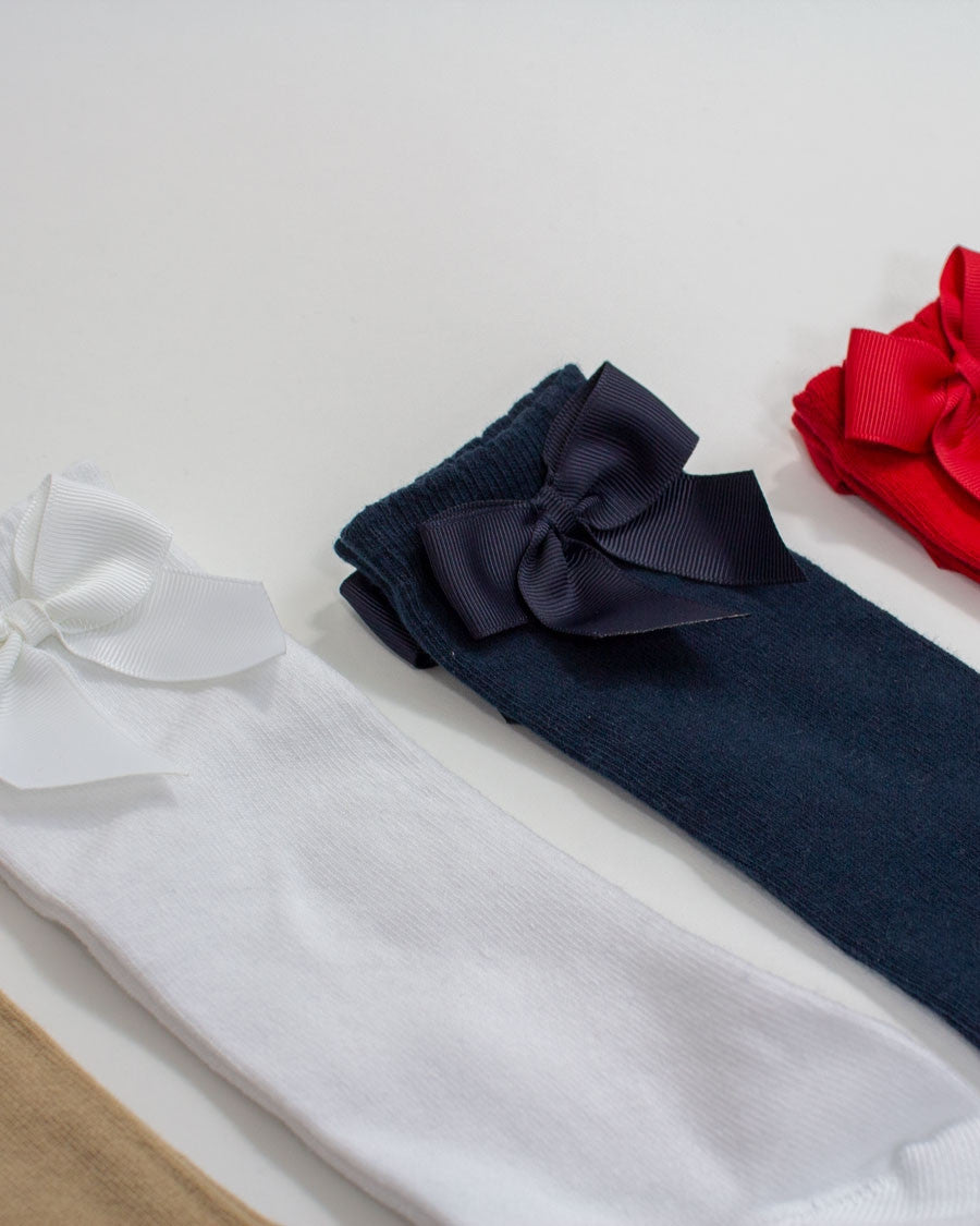 High-end Spanish designer, Carlomagno is known for handmade, high-quality socks. These soft, cotton knee high socks have a beautiful grosgrain ribbon on the side and an elasticated top to keep them in place.