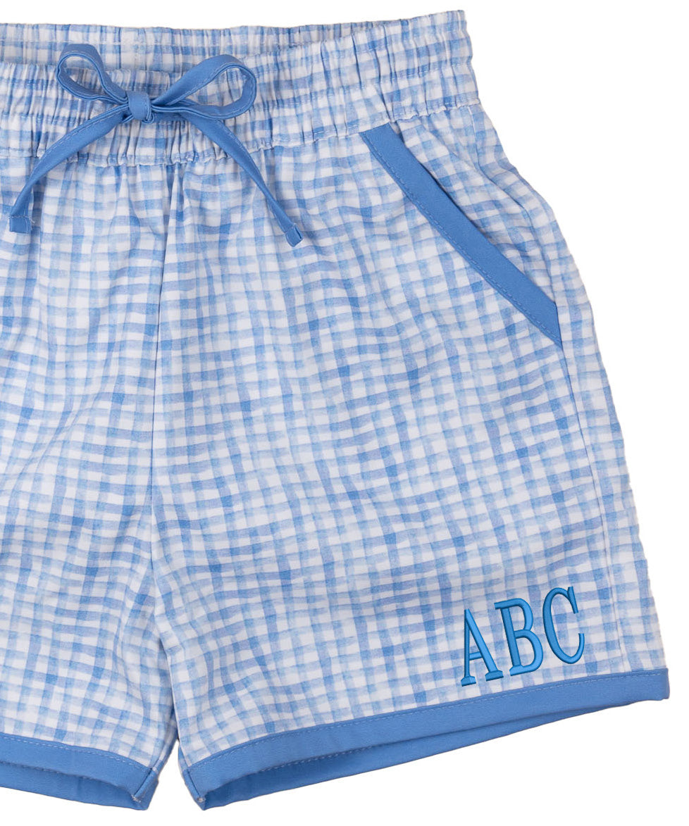Blue Watercolor Plaid Swim Trunks-FINAL SALE