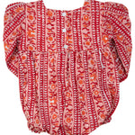 Make holiday moments extra special with our Persimmon Block Print Bubble! Designed for your little one, this charming bubble showcases a festive red and pink floral block print, long ruffle-trimmed sleeves, and a square neckline for an adorable, heirloom-inspired look. The elastic leg openings ensure a comfy fit, making it perfect for seasonal celebrations and cozy winter days.