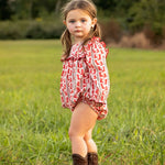 The Cowboy Boots and Candy Canes Bubble is a festive holiday essential for little ones. Made with a cheerful Nashville-inspired country candy cane print, this bubble is soft, playful, and adorable. Perfect for holiday photos, gatherings, and cozy Christmas mornings, it’s a season-ready outfit parents adore.