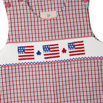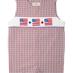 Our Flags Smocked Checked Shortall is a classic, comfy choice for little boys! Featuring hand-smocked flags and stars on patriotic plaid, this piece is ideal for festive family fun. Complete the look with matching sibling outfits for adorable group photos!