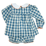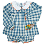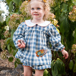Our Golden Harvest Applique Bloomer Set is a picture-perfect pick for your little pumpkin! This two-piece set pairs a long sleeve gingham top with sweet bloomers, both finished with embroidered harvest details. It’s lightweight, breathable, and ideal for fall outings, cozy days, and holiday snapshots.