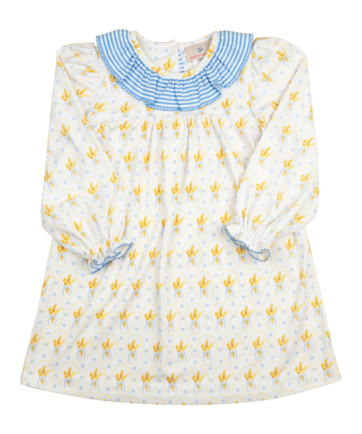 A sweet fall staple, our Golden Wheat Knit Dress is made for twirls and festive fun. Designed in a soft knit with an autumn-inspired motif, this dress pairs comfort with seasonal charm.