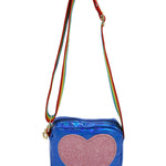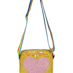 Your little girl with love this holographic Heart Purse with sparkles and an adjustable rainbow camera strap.