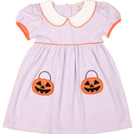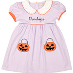 Let your little one shine this Halloween in the Jack O' Lantern Applique Pocket Dress! This charming striped dress features adorable Jack O’ Lantern appliqué pockets, puff sleeves, and contrast piping for a festive yet classic look. Perfect for pumpkin patch visits, trick-or-treating, or fall family photos!