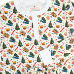White pajamas with classic custom printed Christmas characters to celebrate all season or year long! The perfect Holiday set to coordinate the whole family.