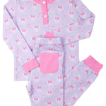 This magical print is sure to be a favorite this summer. The Lavender Mouse Ears Knit Pajama Set is ultra soft and features some magical favorites. Add a monogram to the back pocket for a personal touch. It's perfect for trips to Disney!