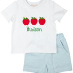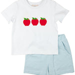 Light Blue Apple Knit Shorts Set- FINAL SALE