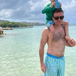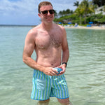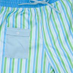 Men's Blue and Green Striped Swim Trunks-FINAL SALE