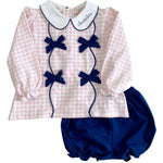 Pink Gingham Knit Bloomer Set with Navy Bows
