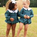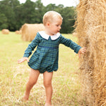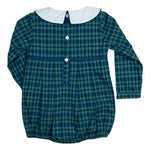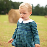 Dress your little gent in timeless style with our Navy Tartan Plaid Boy Bubble. This seasonal staple features classic plaid and your choice of monogram or name, making it a personalized piece for holiday parties, dinners, or Christmas morning memories.