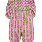 Pretty in pink and perfect for fall, our Pink Floral Mixed Block Print Romper is hand block printed in Jaipur on soft and breathable 100% poplin cotton. The mixed floral patterns add a playful twist, while sweet ruffles make it extra darling. Lightweight enough for warm afternoons, and easy to layer on cooler days—this romper is a must-have for your little one’s fall wardrobe.