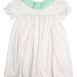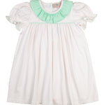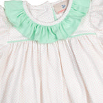 Sweet as can be! The Pink Polka Dot Knit Dress features darling mint ruffle details and a soft pink polka dot print that's perfect for playdates and special days alike. Don't miss the matching sibling bloomer set for the ultimate sister moment!