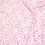 Snuggle up in seasonal charm! The Pink Pumpkin Scallop Print Pajama Set features a sophisticated scallop pattern with playful pumpkin motifs, piped trim, and a relaxed fit for ultimate comfort. Perfect for fall movie nights, bedtime stories, and crisp autumn mornings! 100% chemical free