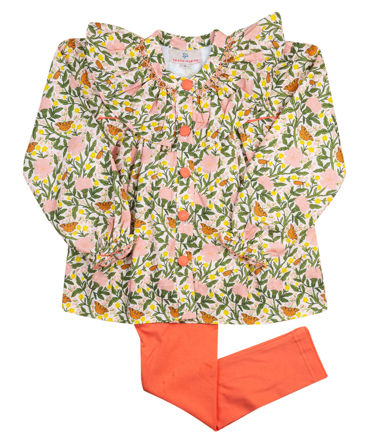Pink Smocked William Morris Inspired Butterfly Legging Set