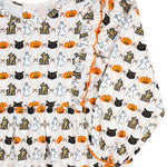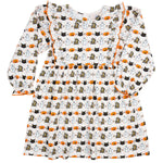 Celebrate fall in vintage style with our Halloween Print Knit Dress. Adorned with charming pumpkins, bats, and bows, this knit dress offers warmth and whimsy for all her autumn adventures. A darling choice for school days, festive weekends, and family photos.