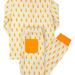 Hop to it in these ultra soft carrot pajamas. This pajama set features a fun and festive carrot print with a pastel stripe background. Perfect for Easter and Spring nights. Add a monogram to the back pocket for a personal touch.