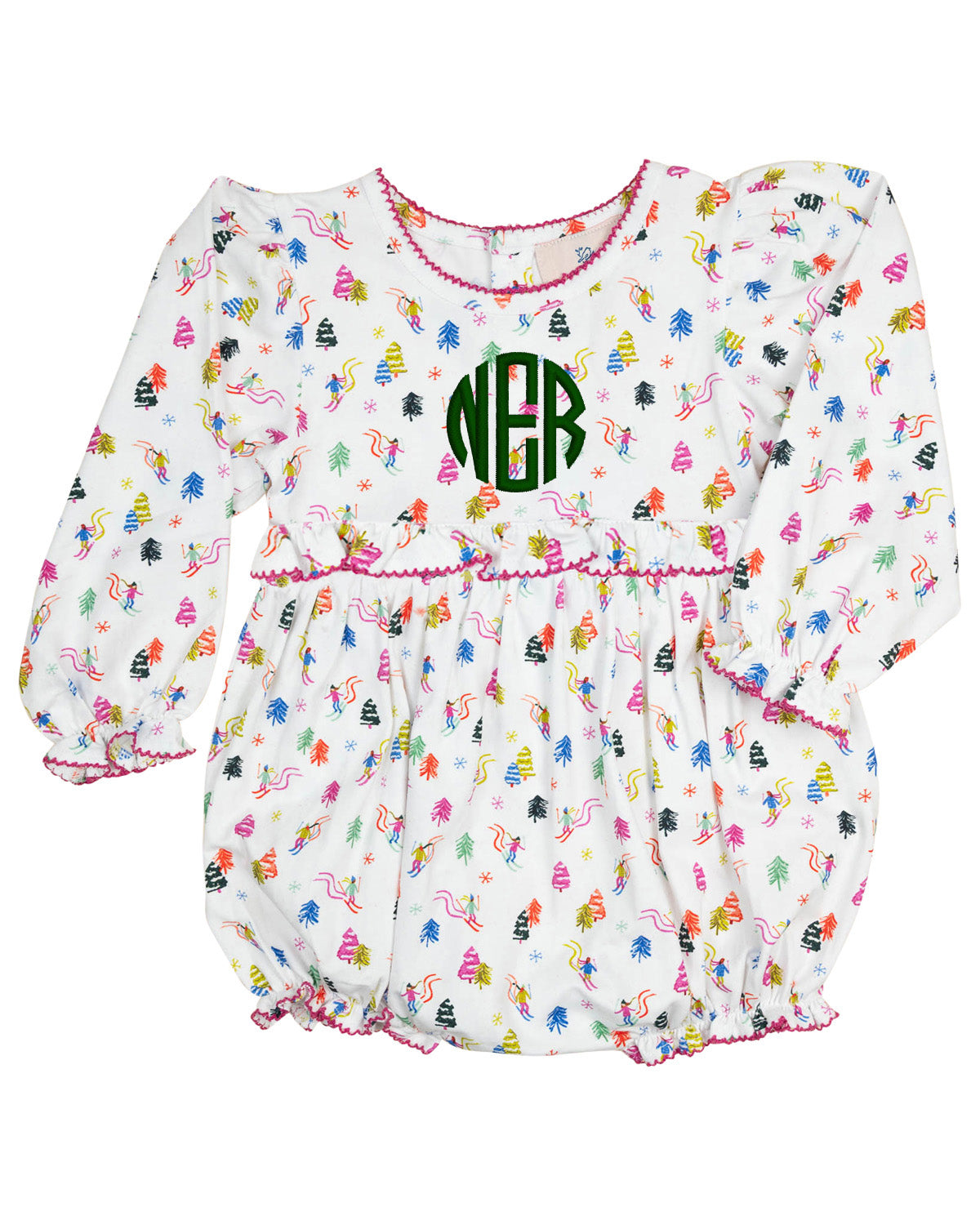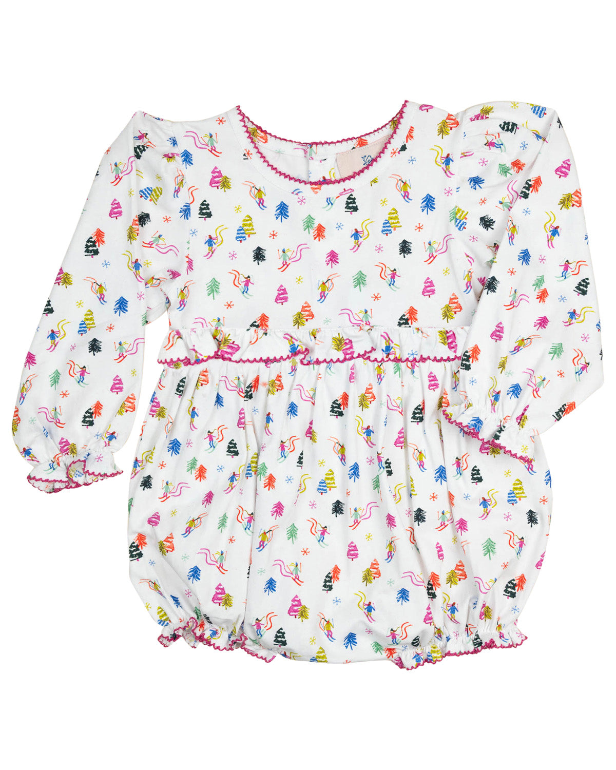 Capture the magic of the winter season with our Downhill Dash Ski Print Knit Bubble! This charming knit bubble features a a fun ski print, long sleeves, and a ruffled trim. Made from ultra-soft fabric, it’s perfect for holiday gatherings, après ski, and festive photos. Pair with matching sibling outfits for an extra-special seasonal look!
