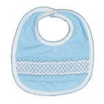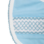 Geometric Smocked Blue Knit Bib