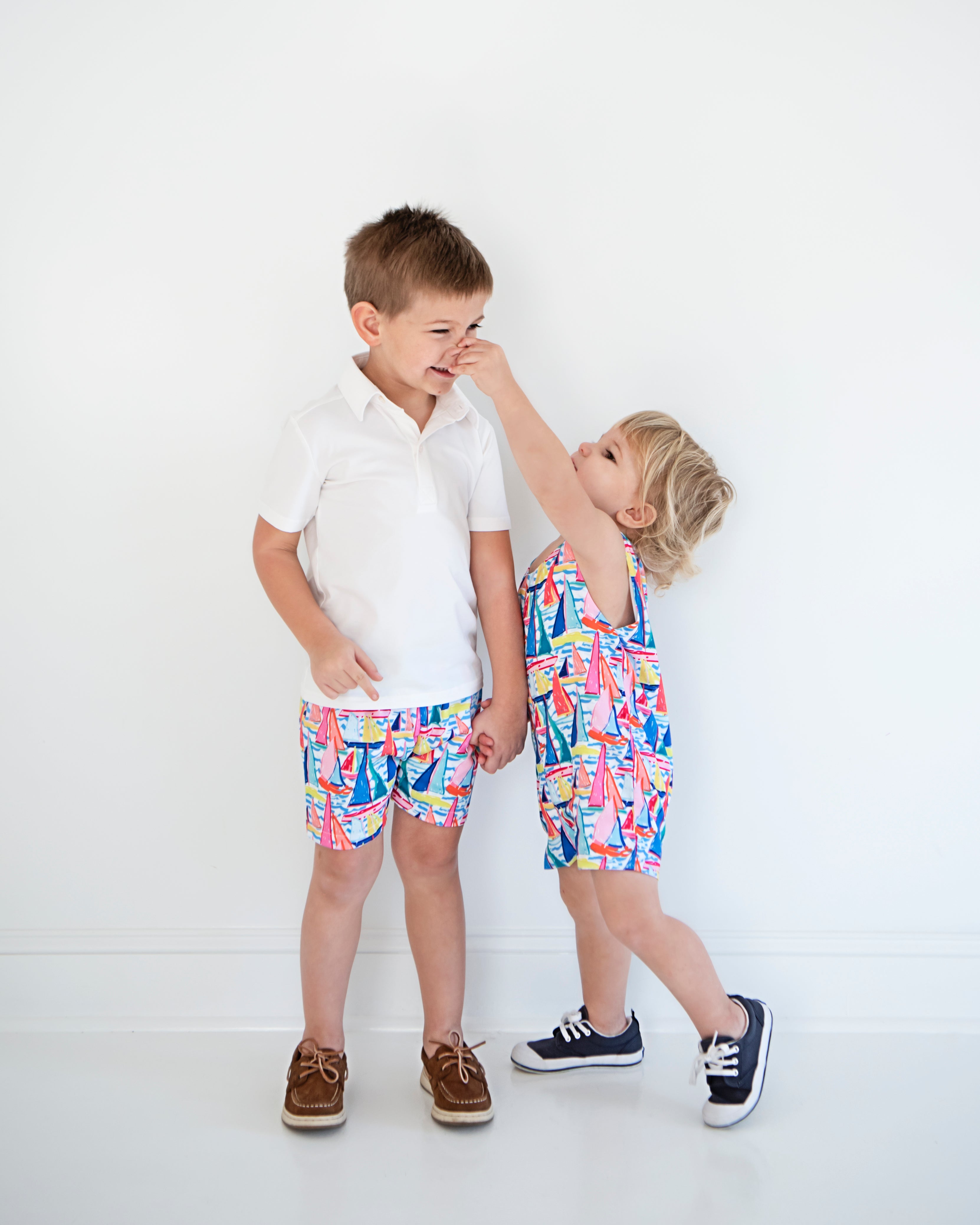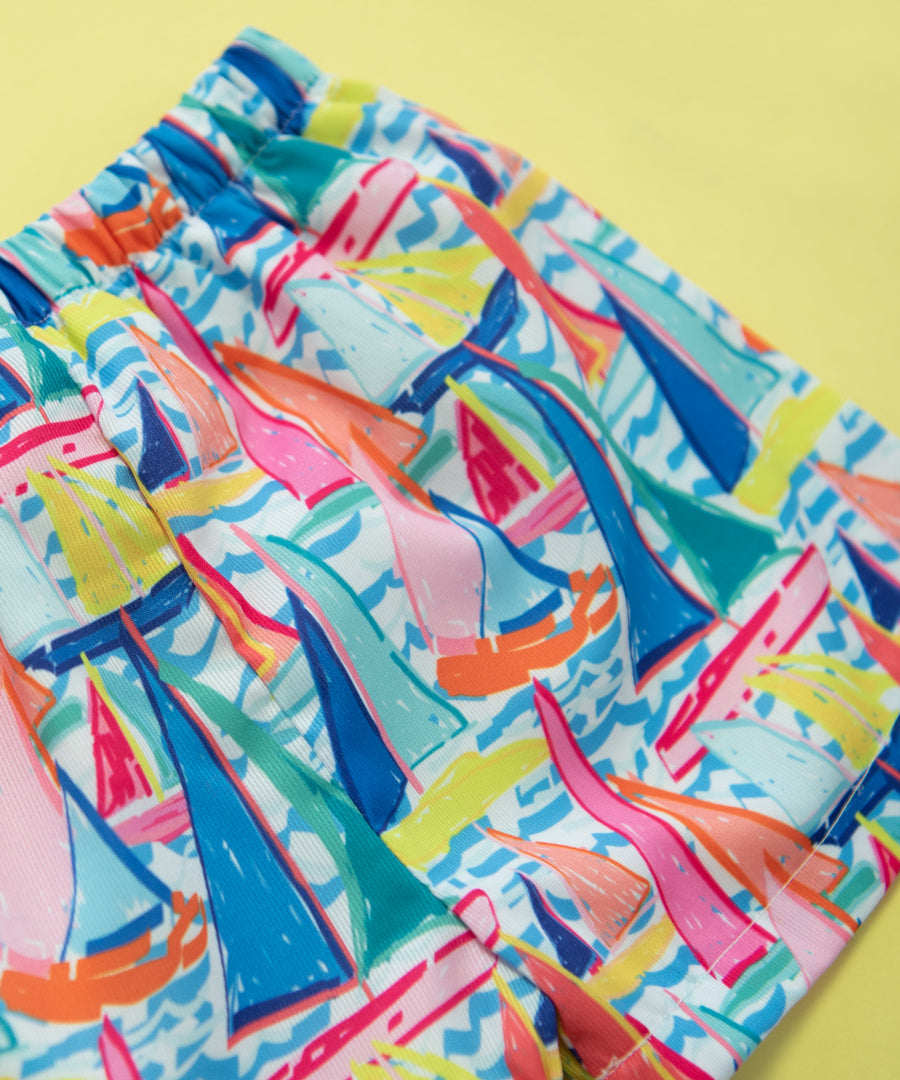Add a splash of nautical fun to your little one’s outfit with our Sailing Soiree Shorts. These playful shorts feature colorful sailboat prints and an elastic waistband for a snug yet comfortable fit. Perfectly paired with a crisp white top or the Sailing Soiree collection pieces, they’re a stylish choice for summer playdates or beachside strolls.