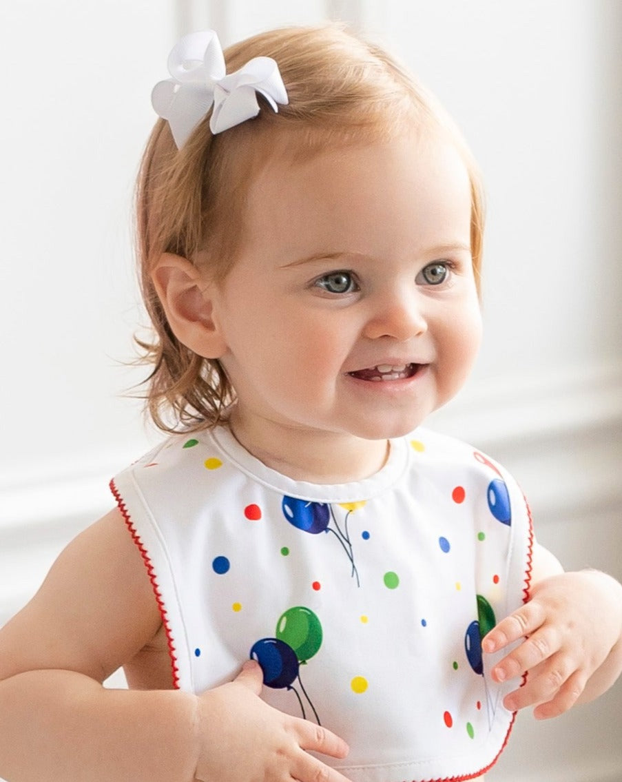 This darling Birthday Balloons Bib is perfect for your little one's special day. Ideal for keeping them clean and dry during birthday celebrations, this bib adds a festive touch to any birthday outfit. Make their birthday extra special with this charming and functional accessory!