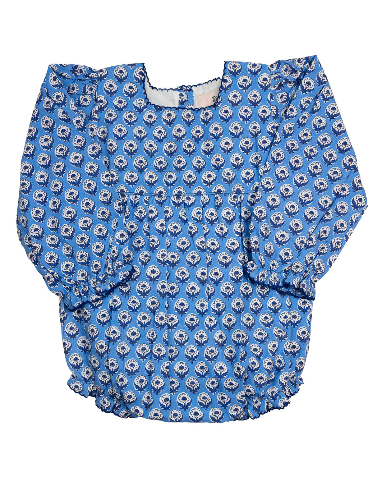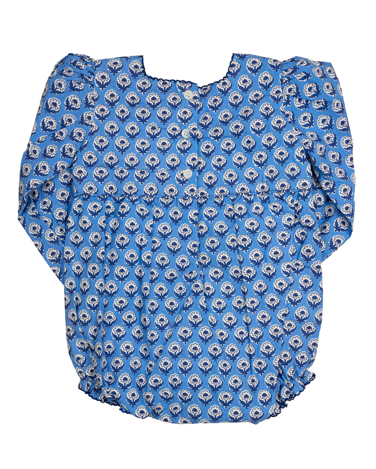 Charming and cozy, the Indigo Garden Block Print Bubble is perfect for your baby girl’s fall wardrobe. Crafted from breathable cotton and hand block printed with a lovely winter floral pattern, this bubble is comfy enough for play and pretty enough for pictures. Snap closures make changes easy, while ruffle details add just the right touch of sweetness.