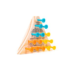 This deceptively difficult brain teaser was redesigned for travel-friendly fun and is one of the best-selling games from Neato!. This Classic Wooden Peg Game includes a 4.75-inch wooden triangle base and 15 colored pegs. Pegs are blue, yellow, and orange in color. 5 of each color are included. All the rules are printed in black ink onto the board’s face, so it’s easy to learn and play on the go without toting around a paper instruction booklet. Made for single-person or multi-person play.