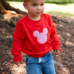 Style meets comfort in this Main Street Applique Mouse Sweatshirt in Red. Perfect for a play date with friends or cooler nights at Disney. Personalize your sweatshirt with a monogram or name. Fits true to size, size up for an oversized fit.