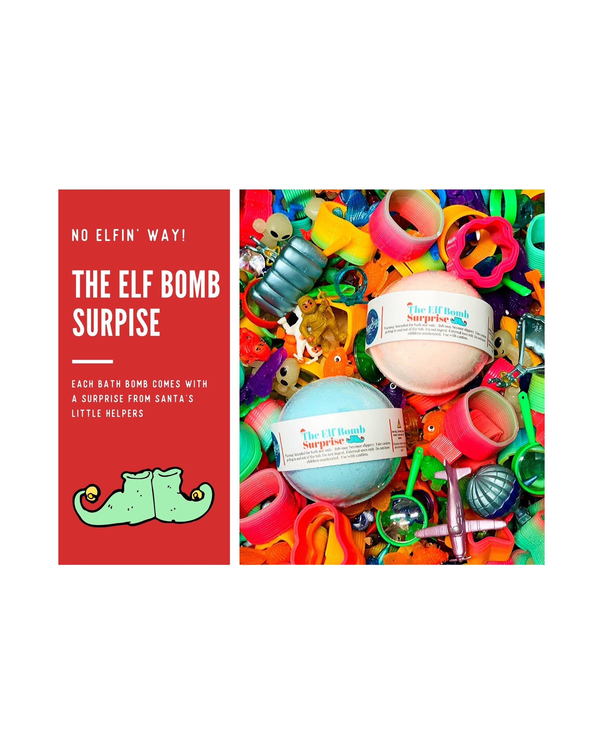 Uh oh! Looks like little Timmy dropped the Elf Bomb! It's time to step in the tub and trust Santa's little helpers! Each one comes with a little surprise inside. Colors will vary.