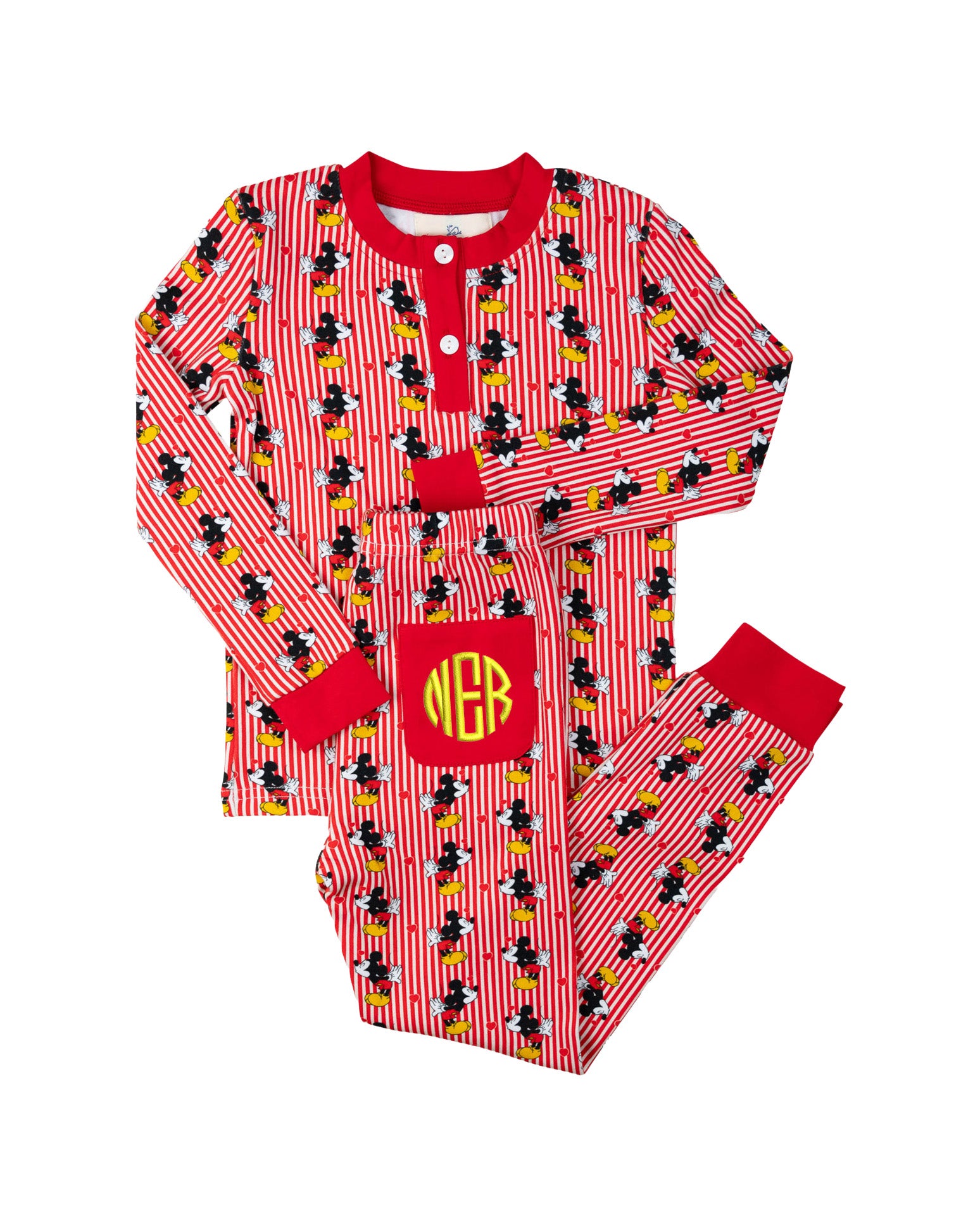 This magical print is sure to be a favorite this summer. The Mouse Fun Striped Knit Pajama Set is ultra soft and features some magical favorites. Add a monogram to the back pocket for a personal touch. Perfect for Disney vacations!