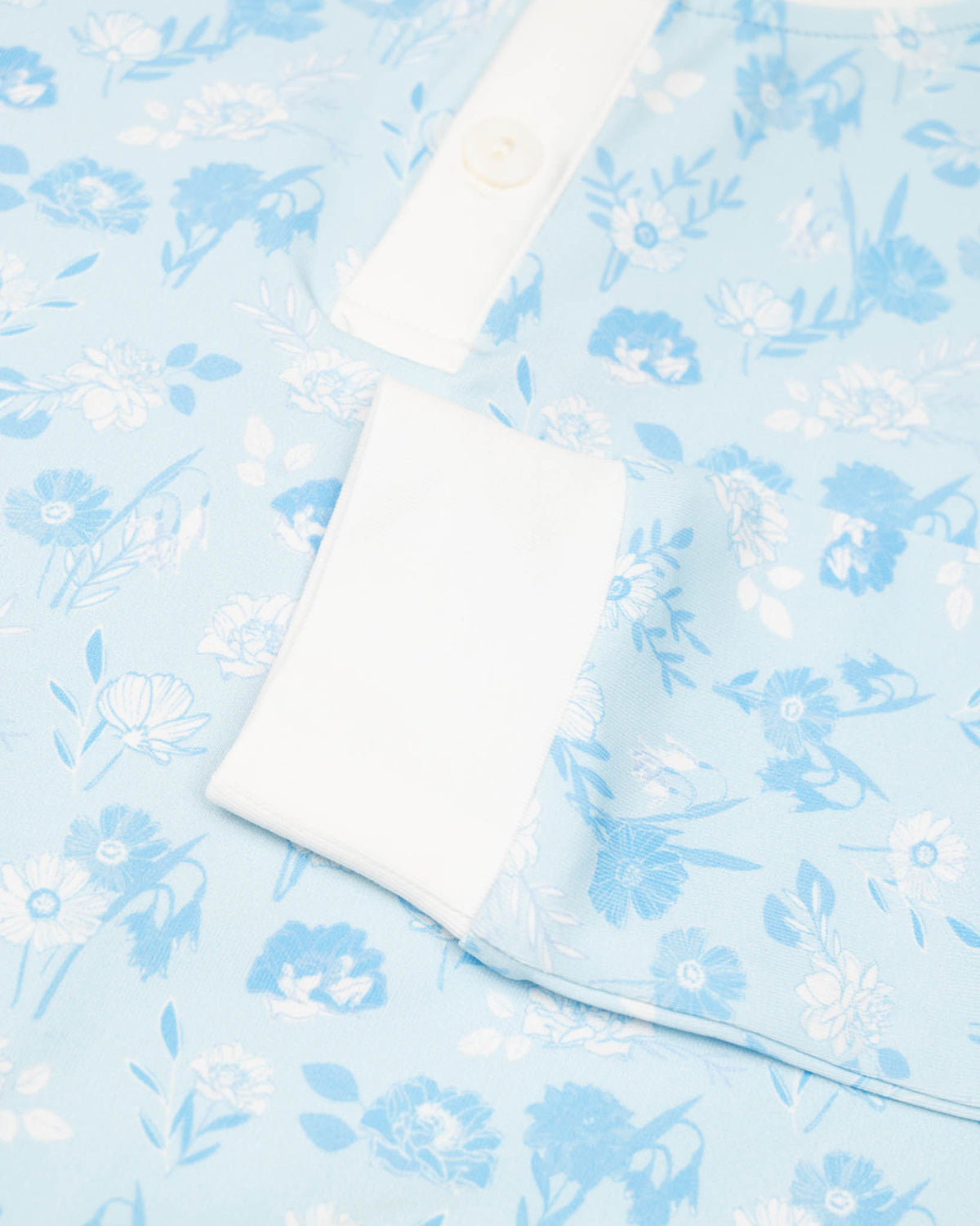 Enjoy your morning pancakes while mom enjoys her morning coffee in these comfy Morning Glory Ladies Knit Pajamas! Featuring a refreshing blue floral print and soft, breathable fabric, this set is perfect for warm nights and cozy mornings. Whether you're lounging or sleeping, the Morning Glory Knit Pajamas bring the perfect mix of comfort and charm to your spring and summer wardrobe!