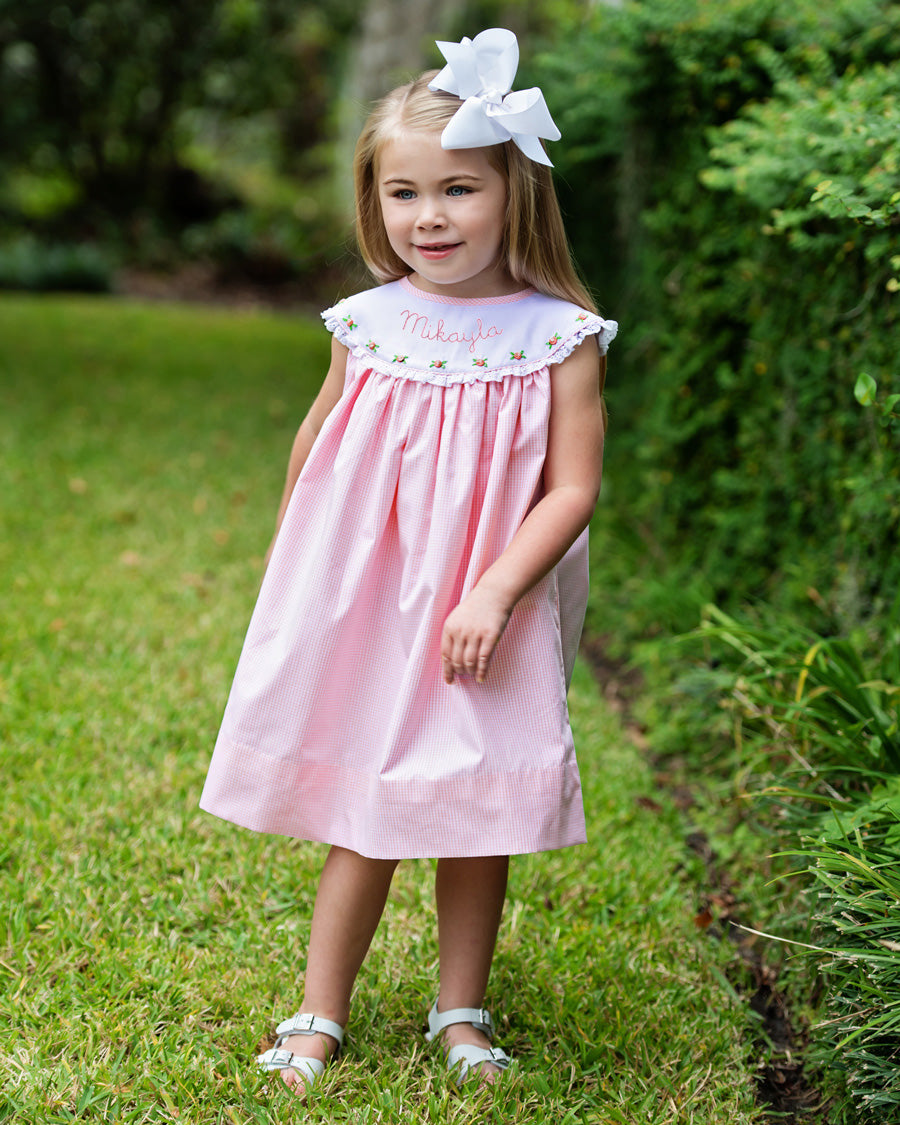 Rosebud Yoke Collar Pink Gingham Dress