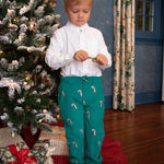 Gingerbread house building needs Candy Canes! Our Candy Cane Embroidered Corduroy Pants are perfect to wear and match with your friends. The pants include zipper in front, pockets and belt loops. Growing boys need elastic backs and adjustable waistbands. Don't wait! You will adore the embroidered candy canes all over the corduroy.