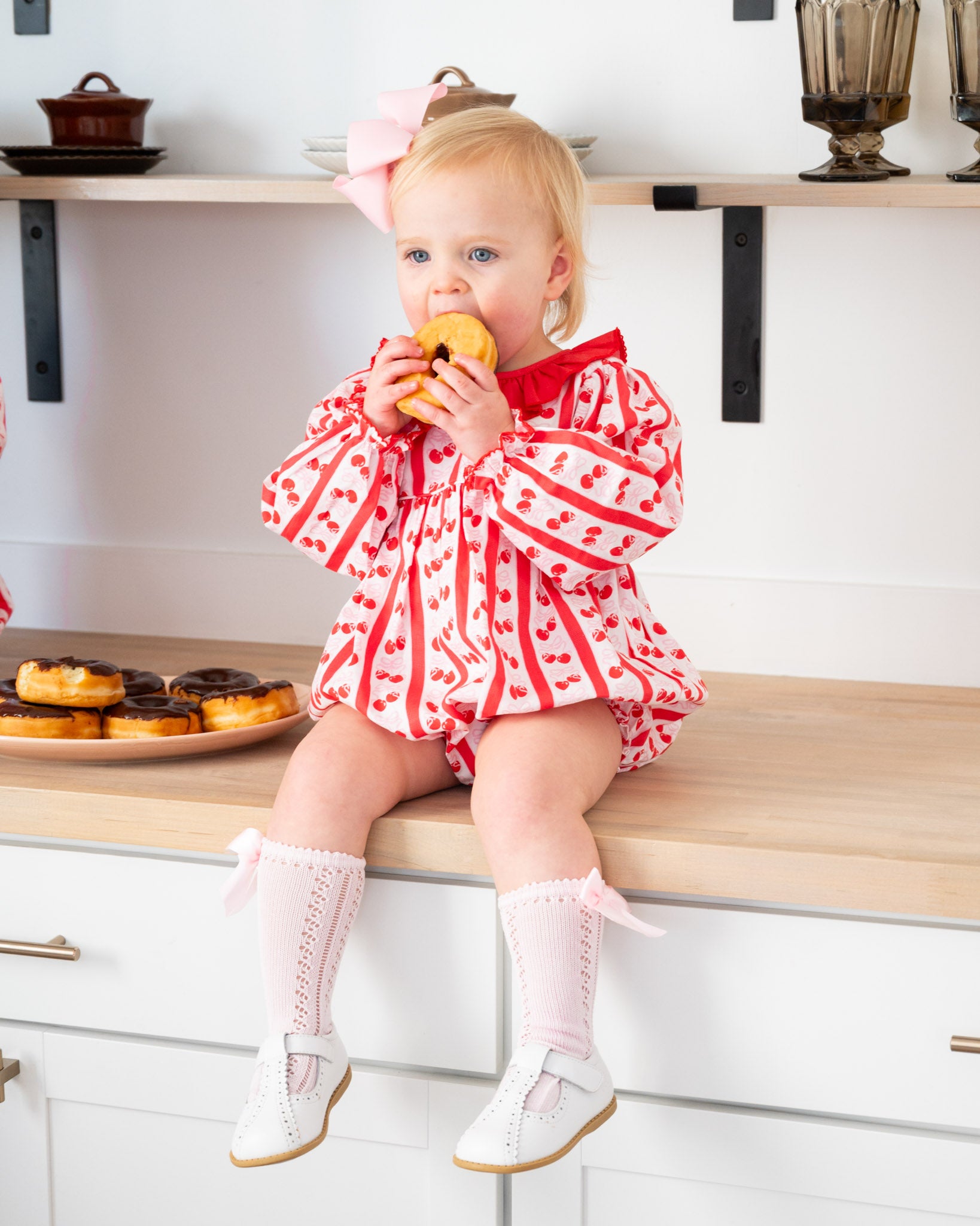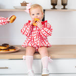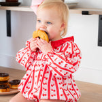 Berry sweet style for your littlest love! The Cherry On Top Bubble features a playful cherry print, ruffle collar, and long sleeves for a picture-perfect look. Comfortable enough for playtime and charming enough for family photos, it’s a timeless piece you’ll treasure for years.