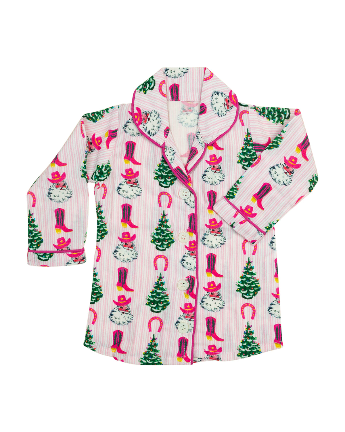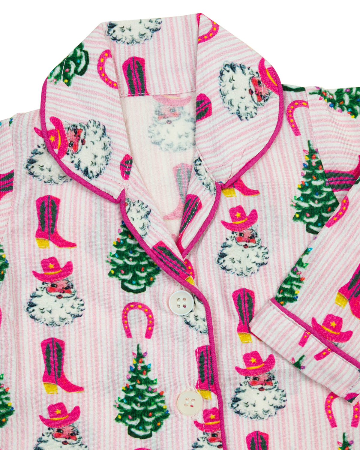 The Cowboy Christmas Doll Gown is the perfect holiday accessory for doll lovers. Featuring the same festive cowboy print as the kids’ pajamas, this gown completes the matching look. A wonderful gift for little ones who love to include their dolls in holiday traditions. Fits an 18 inch tall doll.