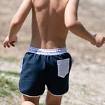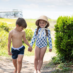 A classic and timeless look just in time for summer. Your little swimmer will love this new design made with a traditional elastic waistband and functioning drawstring. The swim trunks are UPF 50 and fully lined.