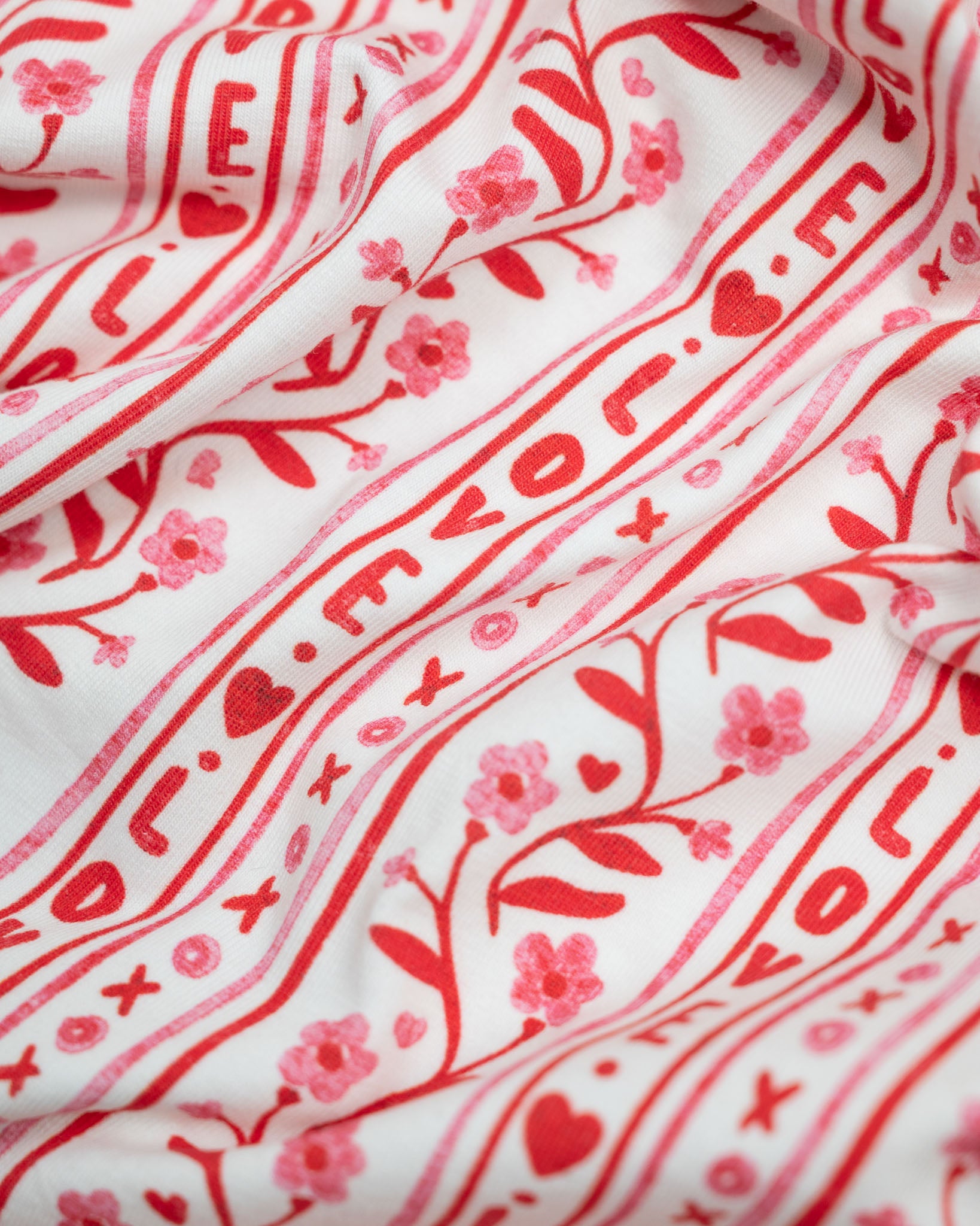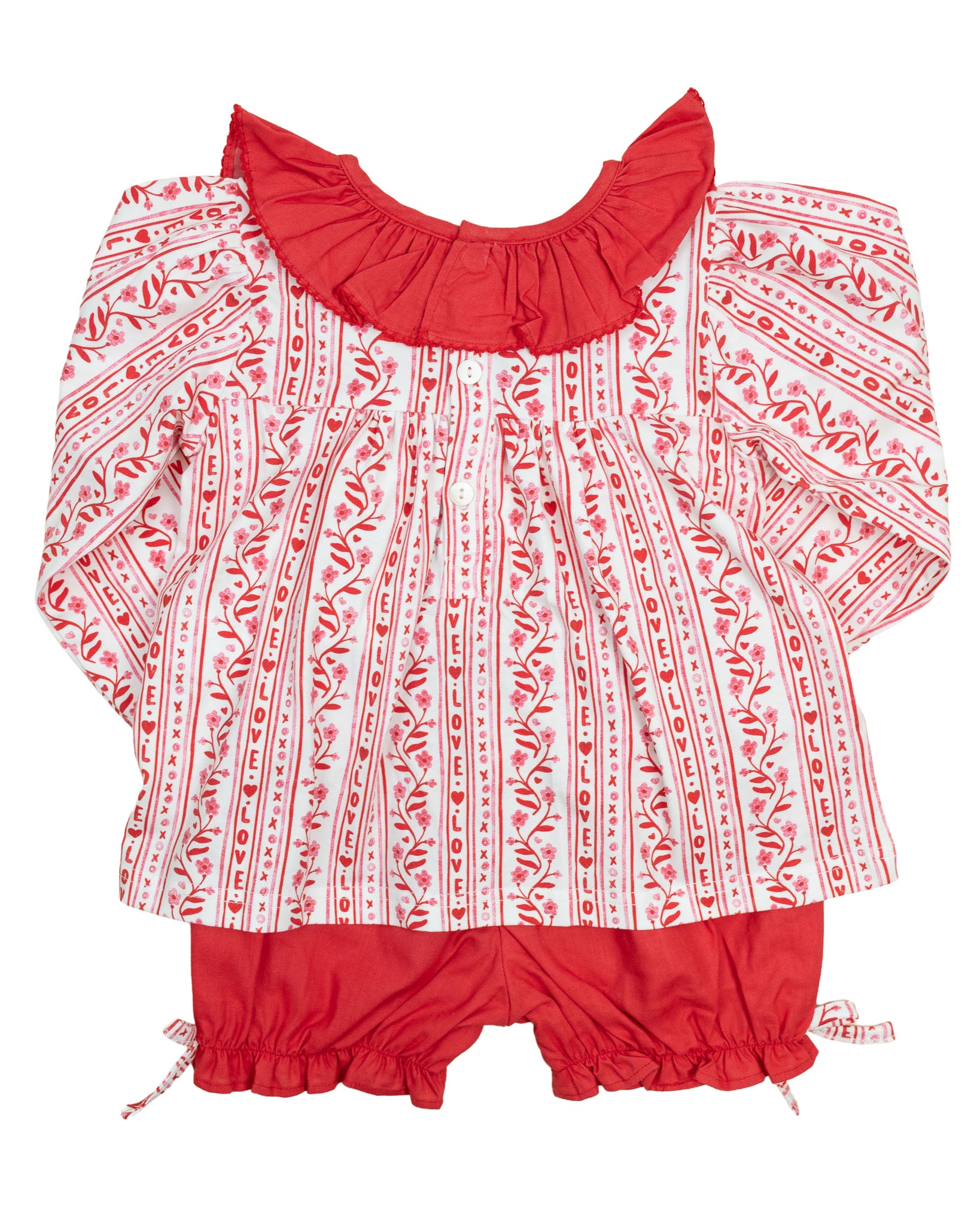 Say hello to Valentine-ready sweetness with our Be Mine Blossoms Bloomer Set. Featuring a dainty floral print and soft red bloomers trimmed with tiny bows, this darling duo captures the spirit of love in every stitch. Perfect for cozy days, playdates, or any occasion worth a little extra charm.