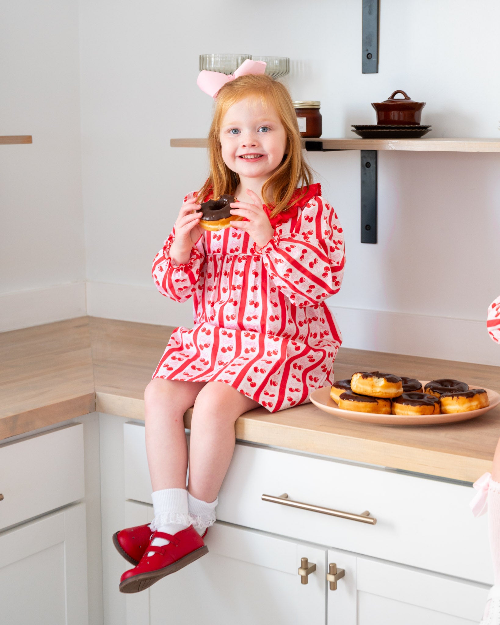 Sweet as can be, our Cherry On Top Dress brings classic charm to every little girl’s day. Designed with cheerful cherry motifs and darling red trim, this dress is perfect for twirling through special occasions or making everyday moments feel extra sweet. Soft cotton fabric and thoughtful details make it a keepsake-worthy favorite.