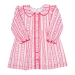 Sweet and stylish, our Valentine Stripe Dress is the perfect outfit for your little love! Featuring delicate pink and red stripes, heart-shaped button details, and pircot trim, this dress is designed for twirling through Valentine’s celebrations. Crafted from breathable fabric for all-day comfort, it's a must-have for any sweetheart’s wardrobe.