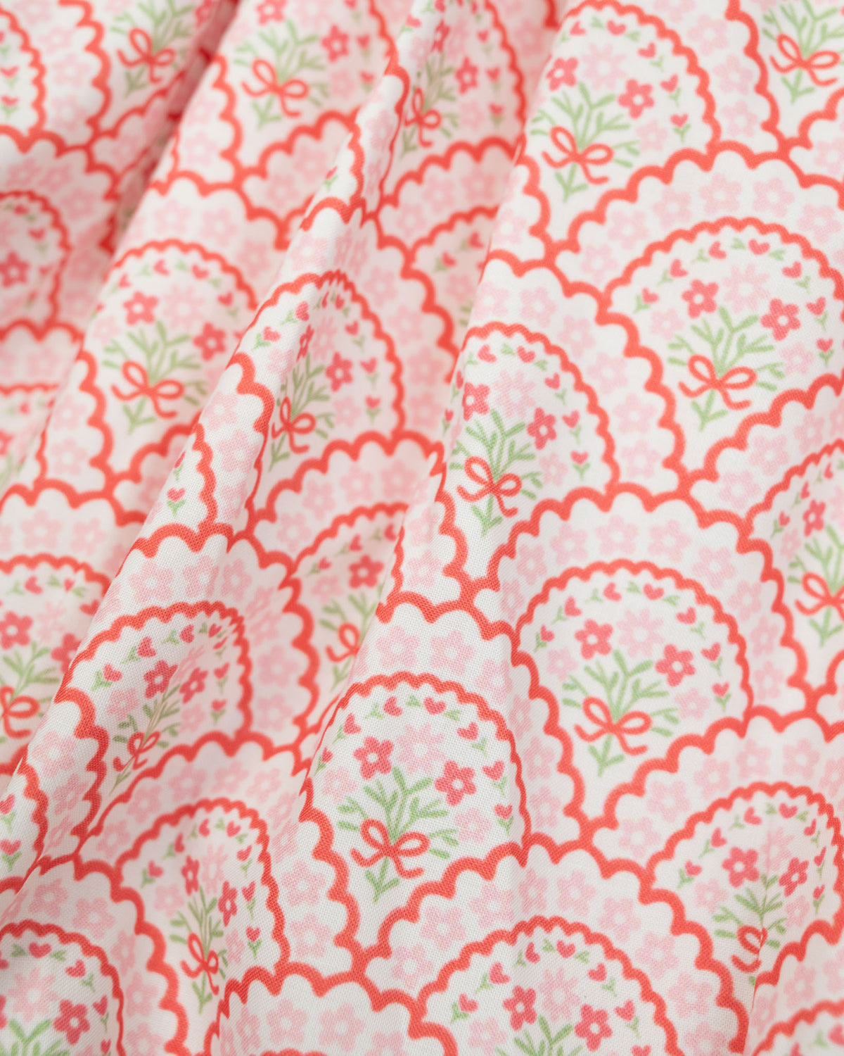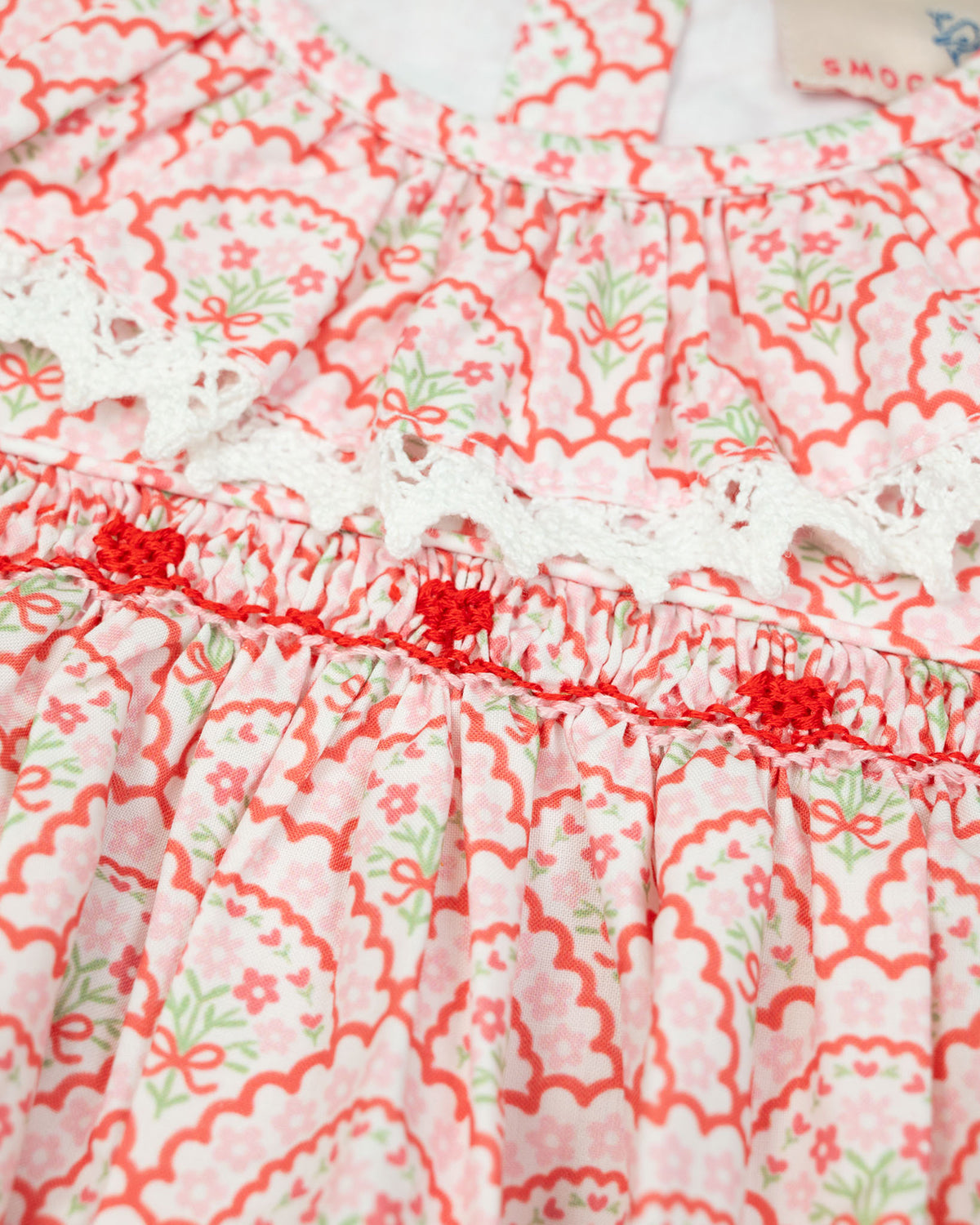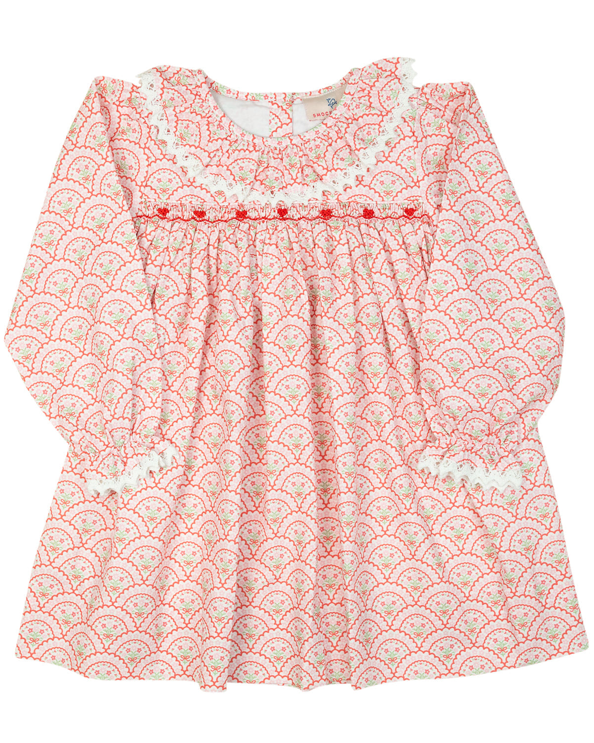 Celebrate love and elegance with our Floral Valentines Scallop Print Dress! This darling piece features a delicate pink scallop pattern, intricate smocking, and charming ruffle trim. Perfect for Valentine’s Day parties, family photos, or everyday twirls, this dress brings timeless beauty to any occasion.