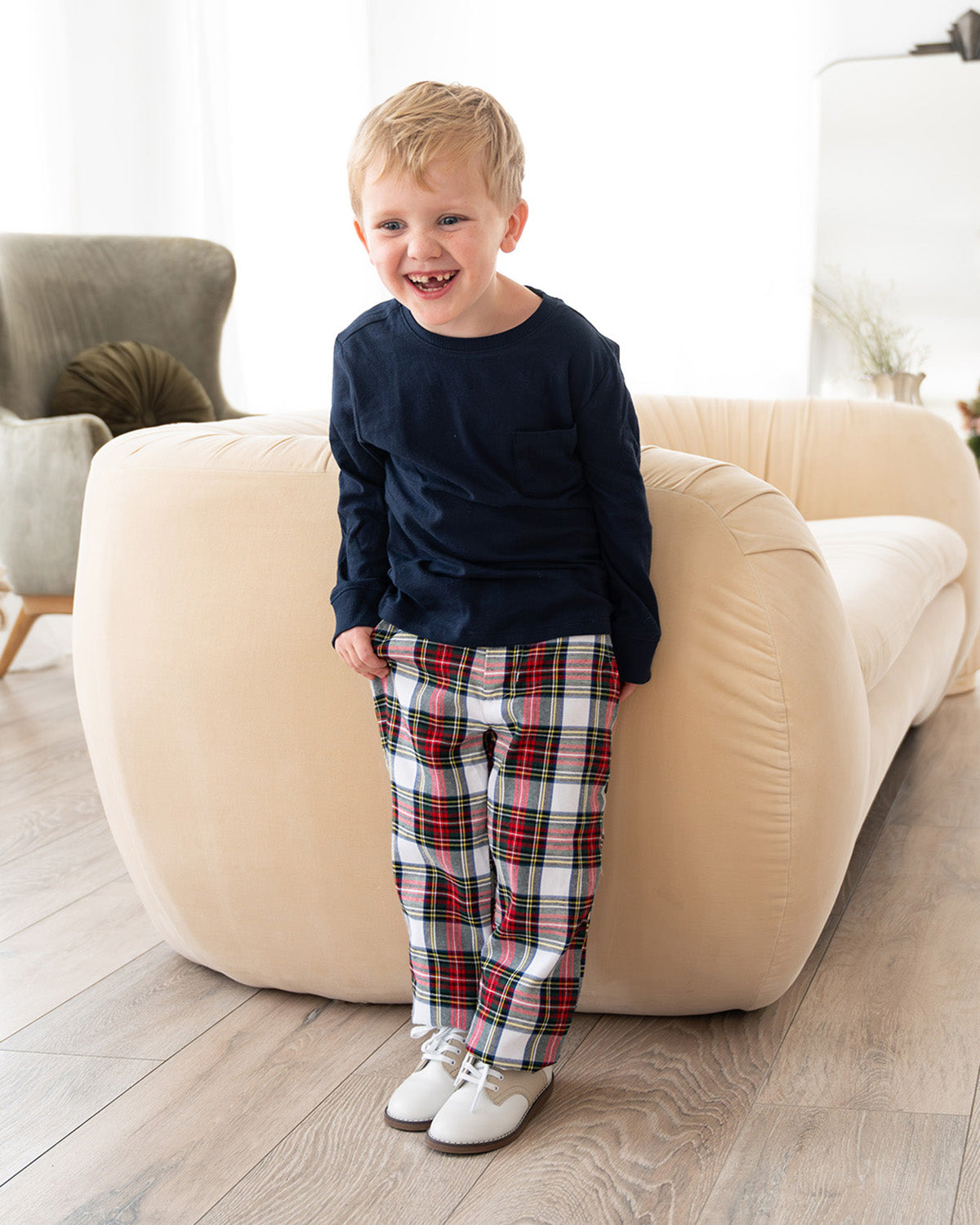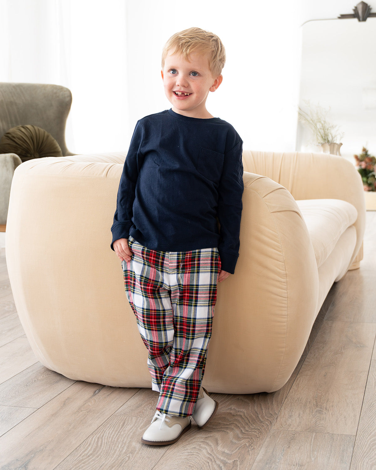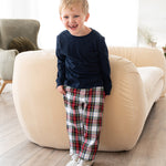 Dress your little gentleman for the season with our Highland Holiday Plaid Pants. Designed in a festive red and navy plaid, these pants pair perfectly with a crisp white shirt or coordinating longall for sibling sets. Made from soft, breathable cotton for comfort that lasts all day through church services and family gatherings.