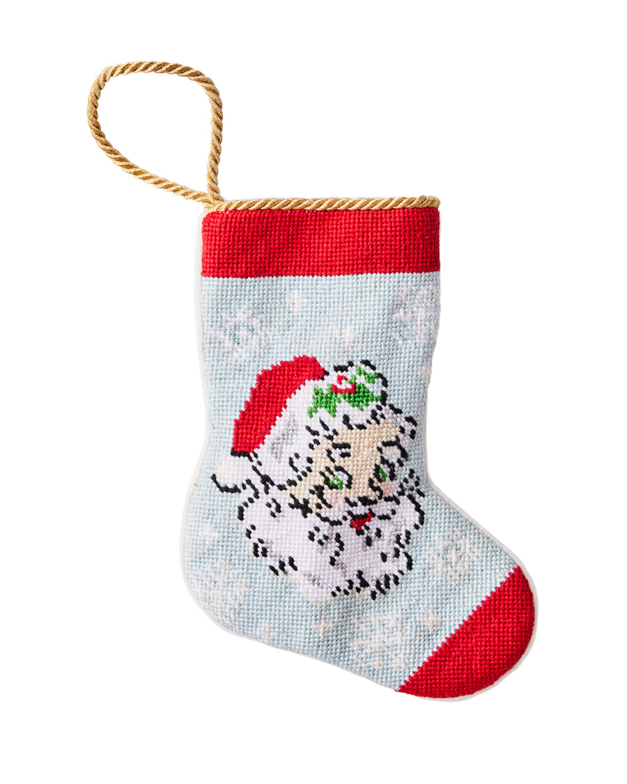 Each heirloom quality Bauble Stocking is hand-stitched needlepoint with cotton threads and oh-so-soft velvet backing. From start to finish, the attention to precise detail makes this a very special gift. 6" long, 4.25" wide
